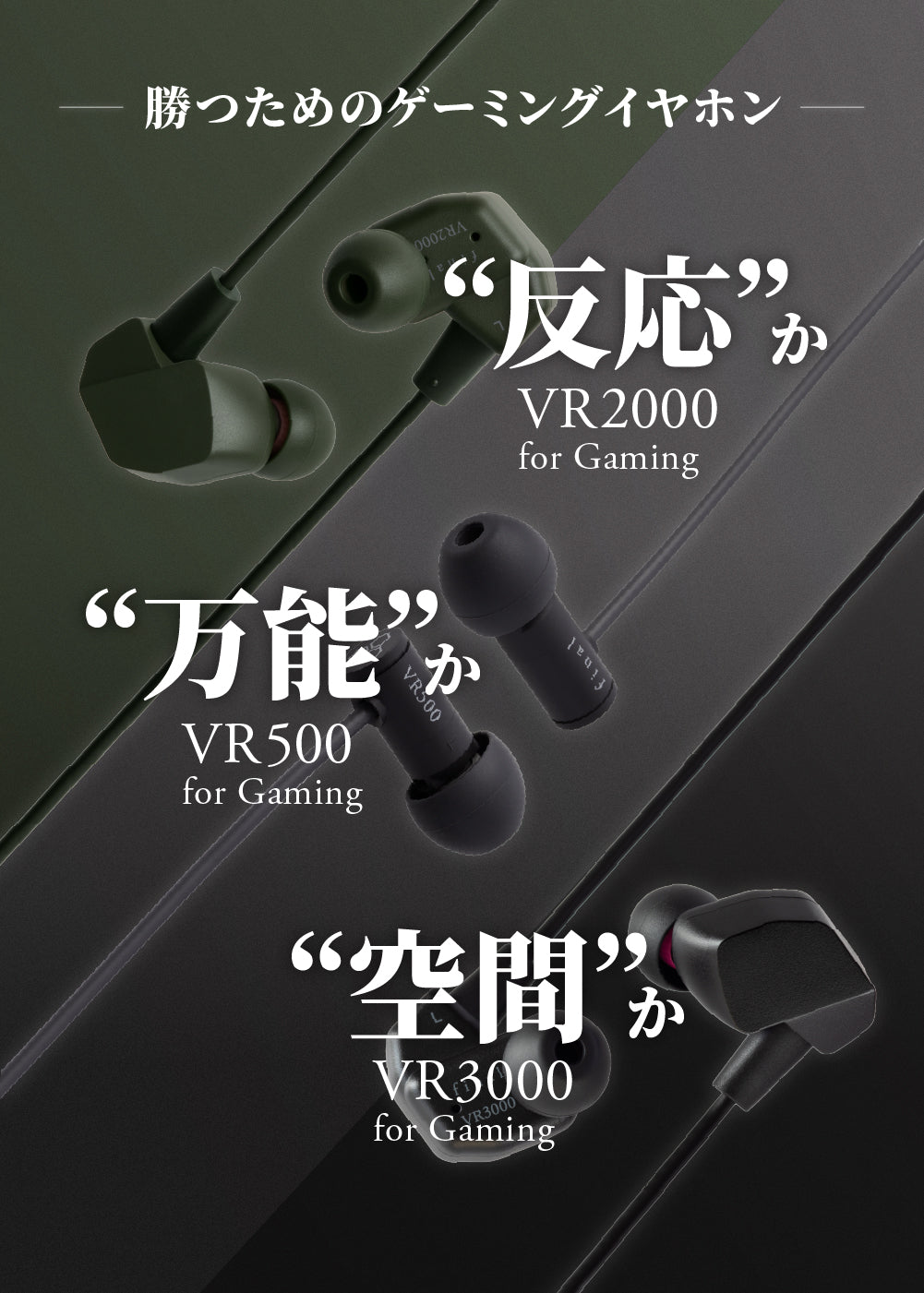 対戦格闘やFPS、音楽ゲームなど、特に競技の世界においては、効果音へ「反応」する瞬時の判断こそがプレーヤーの勝敗に大きな影響を与えると言っても過言ではありません。「VR2000 for Gaming」は勝利にこだわるプレイヤーのために開発された本格志向のイヤホンです。